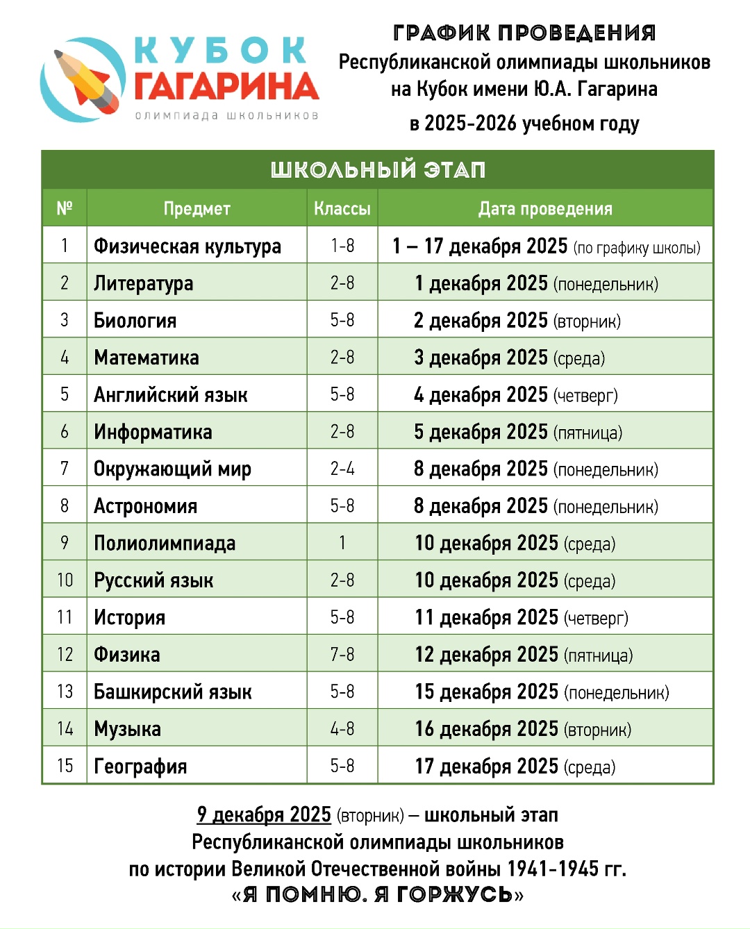 Положение о Республиканской олимпиаде школьников на кубок имени Гагарина Ю.А.